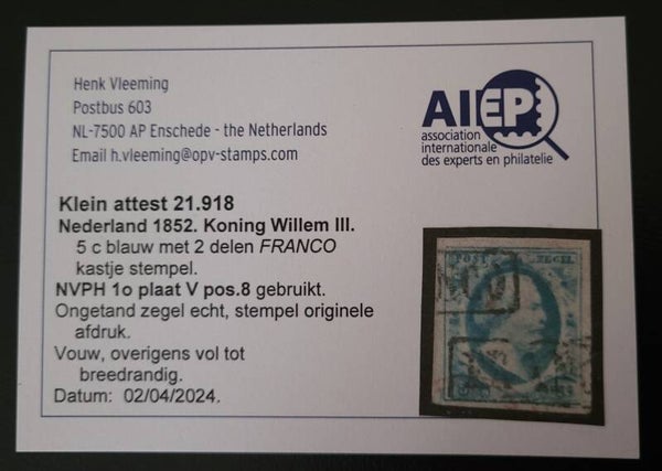 Mooie gestempelde Koning Willem III-zegel pos. 8 uit 1852, zie scans!