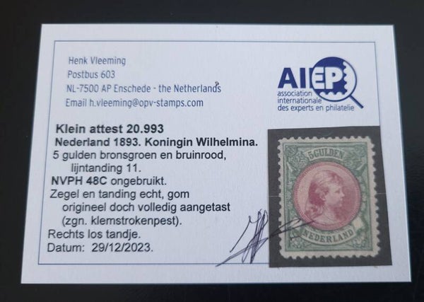 NVPH 48C ONGESTEMPELD MET ATTEST