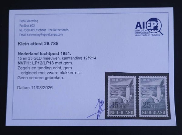 LUCHTPOST 12-13 ONGESTEMPELD MET ATTEST