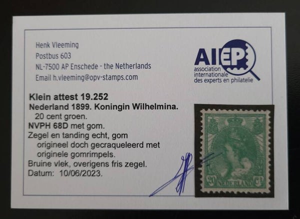 Mooie postfrisse Koningin Wilhelminzegel uit 1899 zonder verborgen gebreken met ATTEST, zie scans!