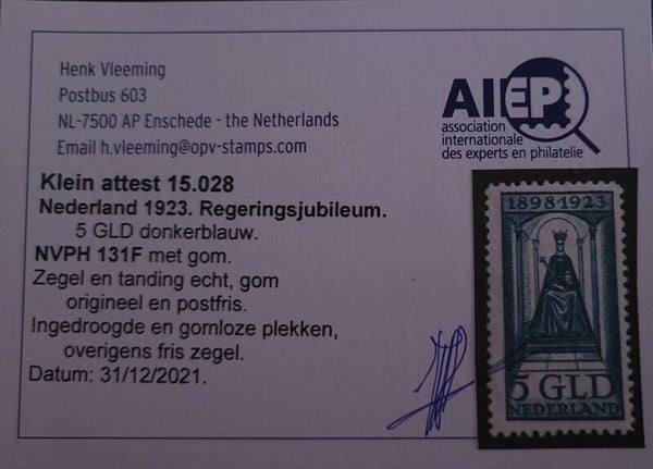 Mooie postfrisse Jubileumzegel uit 1923 zonder verborgen gebreken met ATTEST, zie scans!